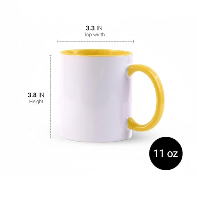 This mug uses a 3-tone design. This means the outside is a vibrant yellow, while the inside of the mug and the handle feature different, contrasting colors. These colors are specifically chosen to complement the yellow exterior. This design makes the mug look more premium and unique compared to ordinary, single-color ceramic cups.