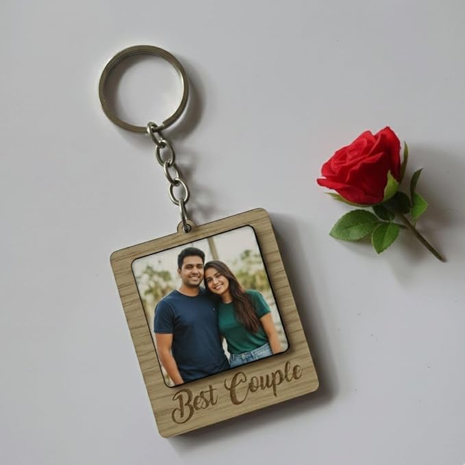 Wooden Engraved Couple Theme Keychain